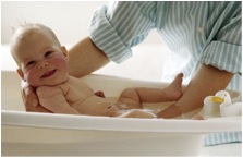 1) Encha a banheira apenas o suficiente para cobrir as pernas do bebê (em média 7cm de água ou 5 dedos).