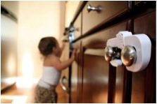 2) Coloque protetores adequados nas portas dos ambientes e de armários, pois os bebês amam abrir e fechá-las. O mesmo com gavetas, porque elas podem cair sobre eles, além de machucar as mãozinhas.